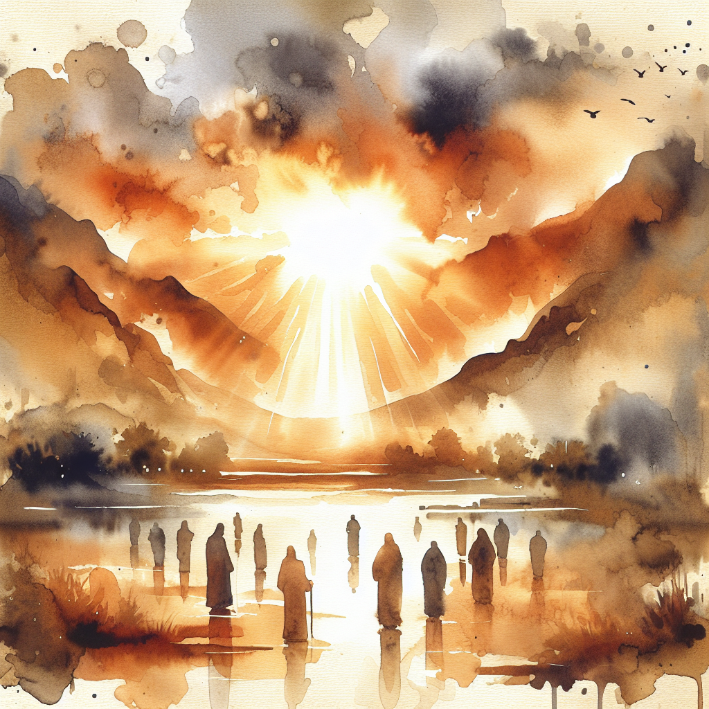 No sun yet—that would come later. This was light itself, pure and primordial, ripping through the darkness like the first breath of a newborn universe. Light that had no source except the voice of God. Light that existed because he commanded it to exist.